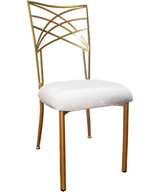 The Fan Fare Chair features a beautiful metallic gold structure with white cushion